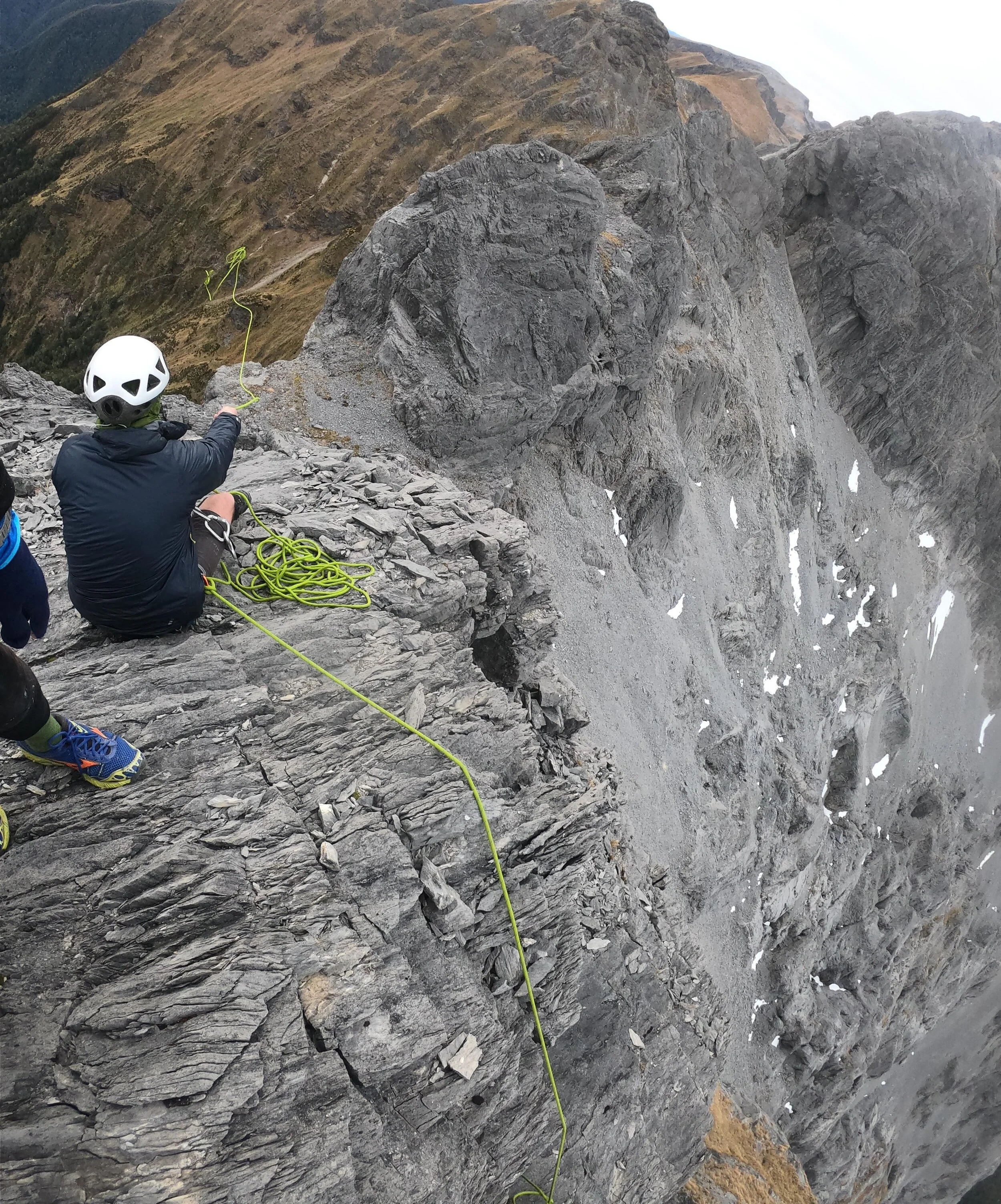 Looking for a belay point on the South Twin.