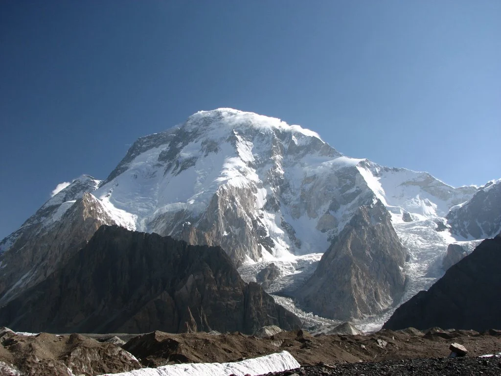 Why Broad Peak. Because it’s in Pakistan a place I have a long association with but above all because its located in the heart of the Karakorum on the Baltoro glacier in the greatest concentration of major peaks in the World. Just to go to the Baltoro is generally considered an expedition itself. The standard route up Broad Peak is not a technically demanding climb which is another prime consideration but it is consistently very steep. Most failures on the mountain are due to exhaustion and altitude. It is also from the risk stand point relatively safe from objective dangers such as avalanches compared to some of the Worlds other major peaks.
