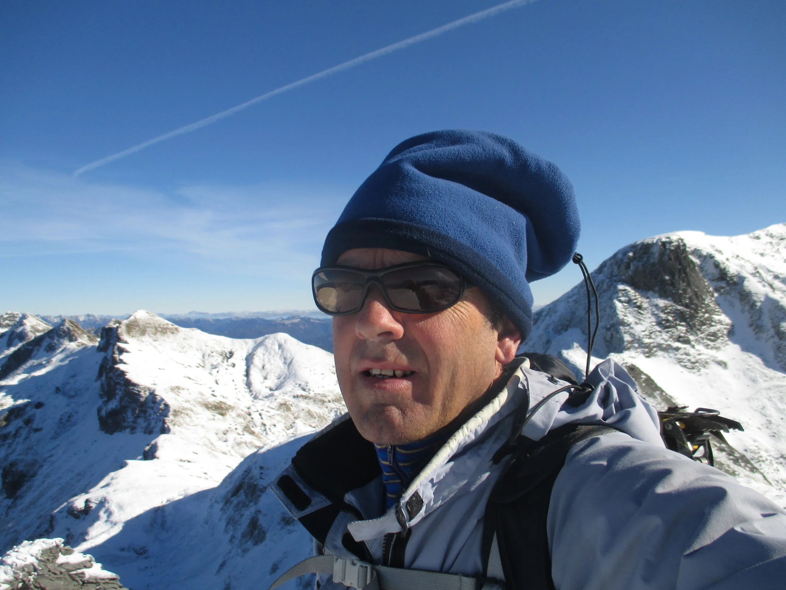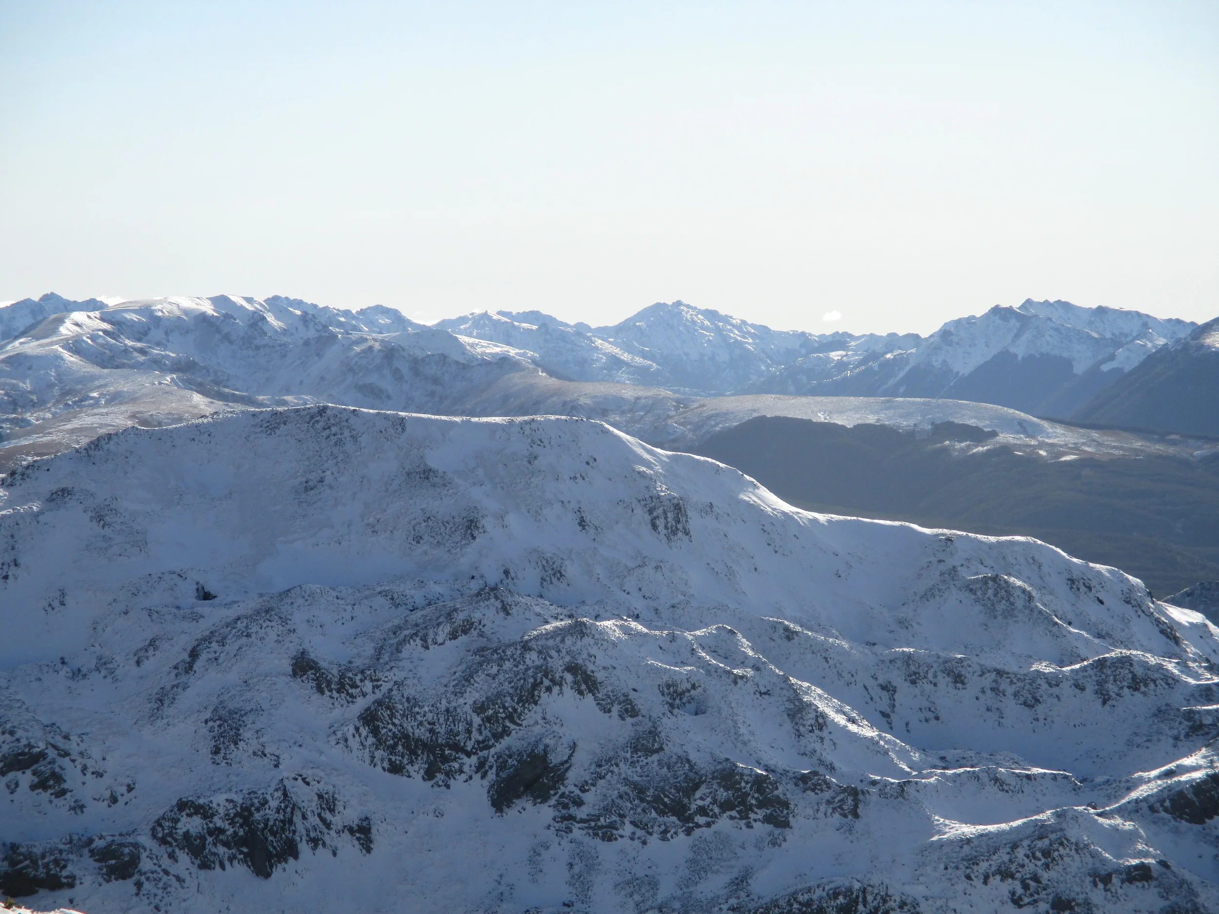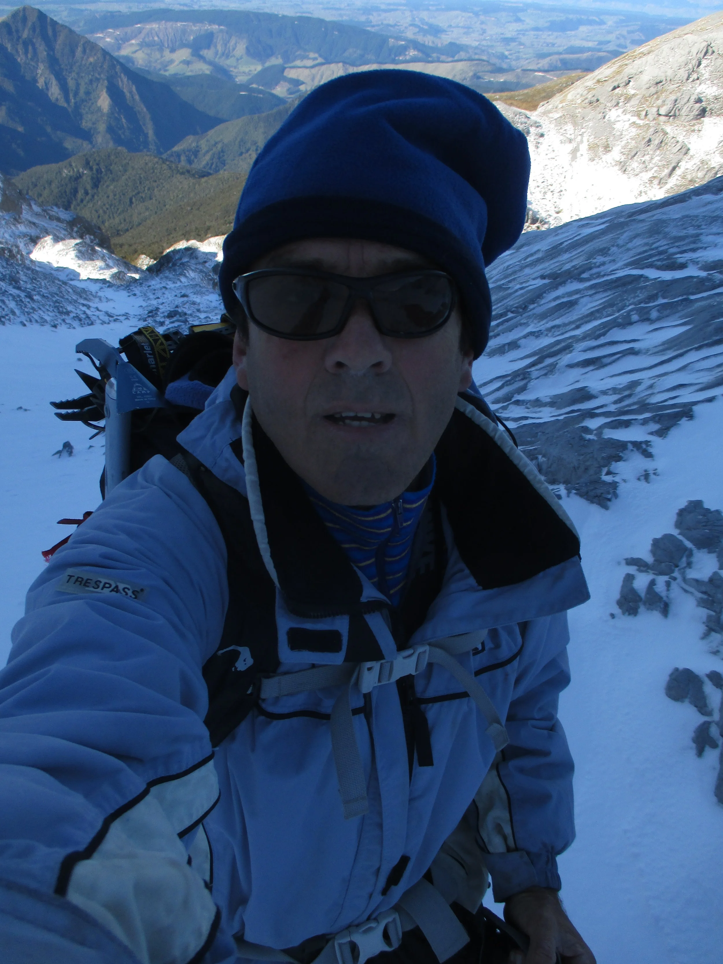 "Nothing can be less like a mountain at one time than the same mountain at another" so Leslie Stephen wrote over a century ago. Its rather fortunate for me with such limited time available to go out its very much the reality. There's only a few training peaks within in a day of where I live but as conditions vary so much it means I often seem to be on very different ones. This Sunday I had the added fortune of some company - Sergio from Chile who's brother is a mountaineer so he already had a good idea about it all and moreover he is a former Chilean National team athlete in the steeple chase and is used to hard physical work. Much of his athletic career was spent at training camps at altitude in the mountains of Chile!! And the mountain , Mt Angelus again , another 10 plus hour day but with rather different snow conditions than last time and by traversing the ridges from South to North rather different than the West face climb!!