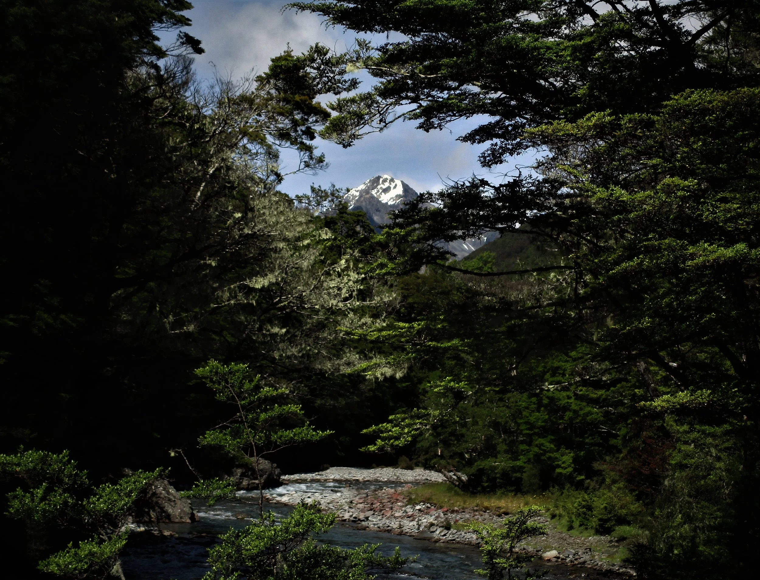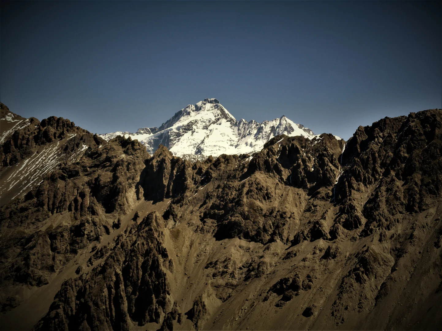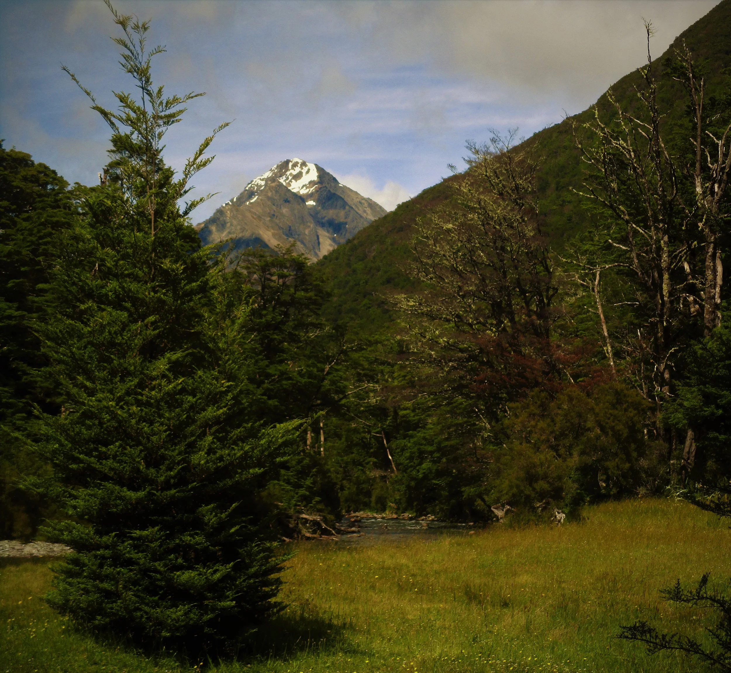 First appearance of Mount Travers during the approach up the Travers valley ,Mount Travers is the second highest peak in the Nelson Lakes National park by a mere 2 meters and its large bulk can be often seen in classic pyramid mountain form from far away.