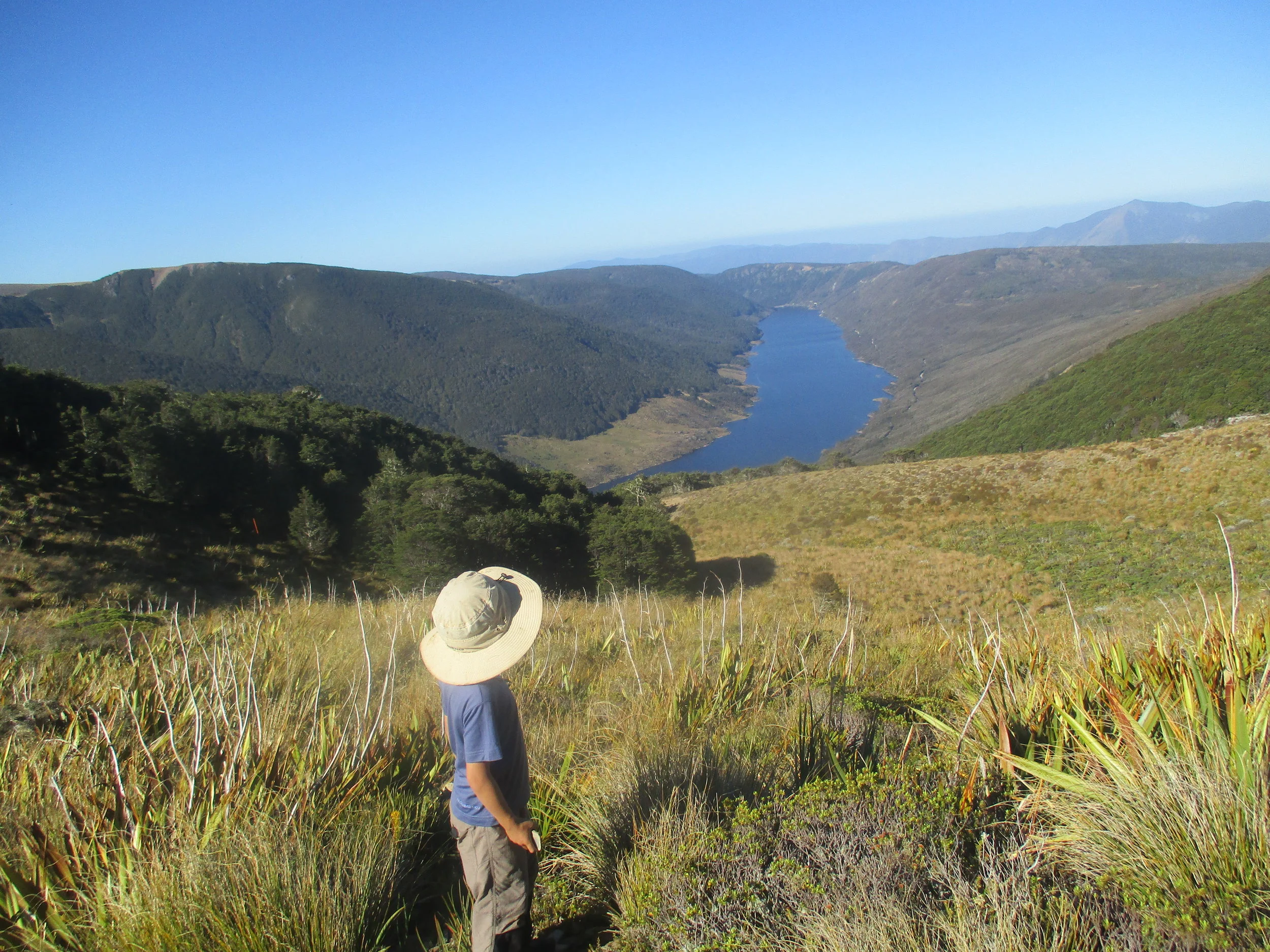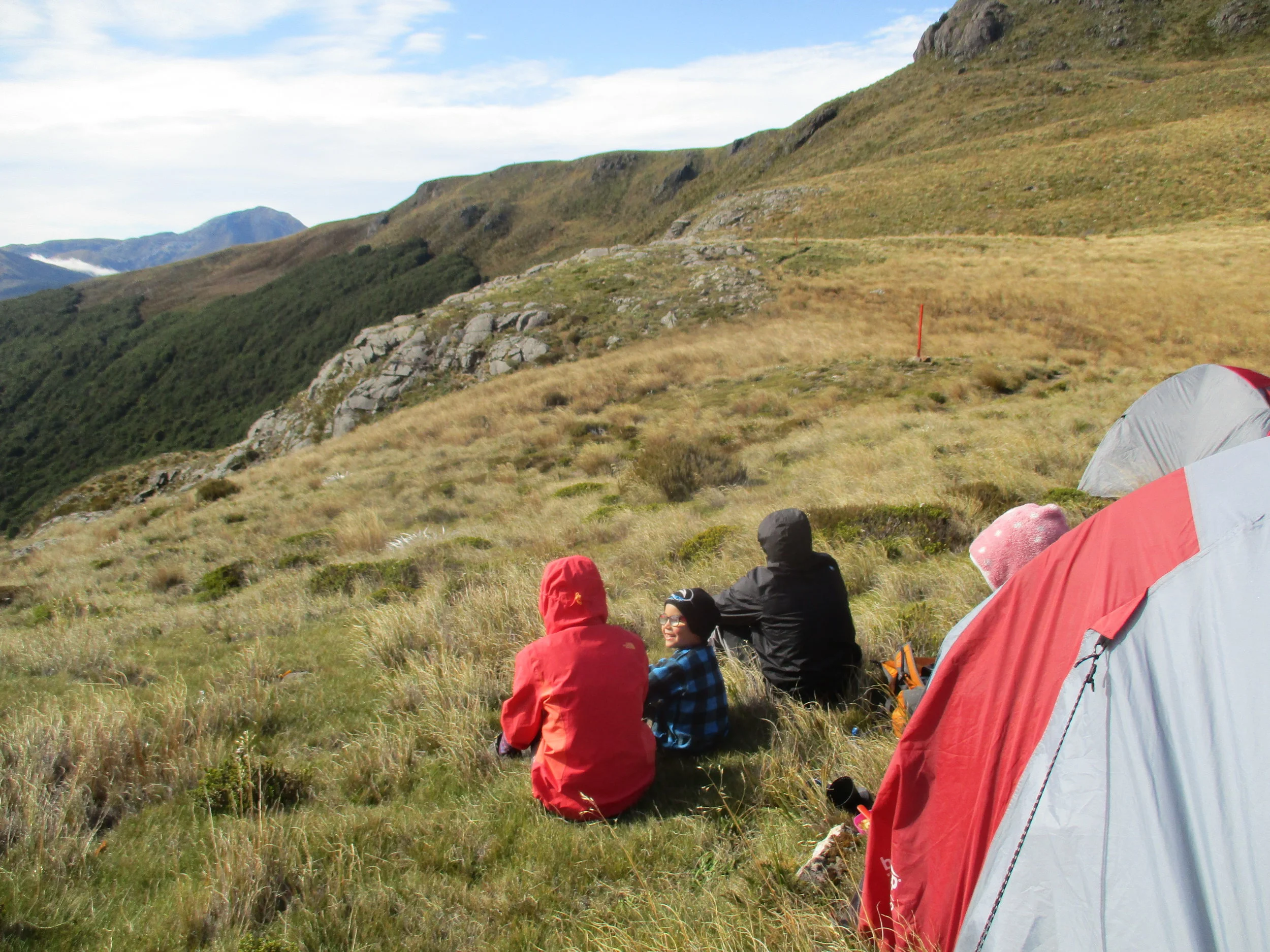 After spending the whole school holidays waiting for a break in the weather I finally got Isabelle and Leo up to Lake Peel below Mount Peel on the the very last weekend before school. Here Leo looks out over the Cobb Resivor and into Golden Bay.