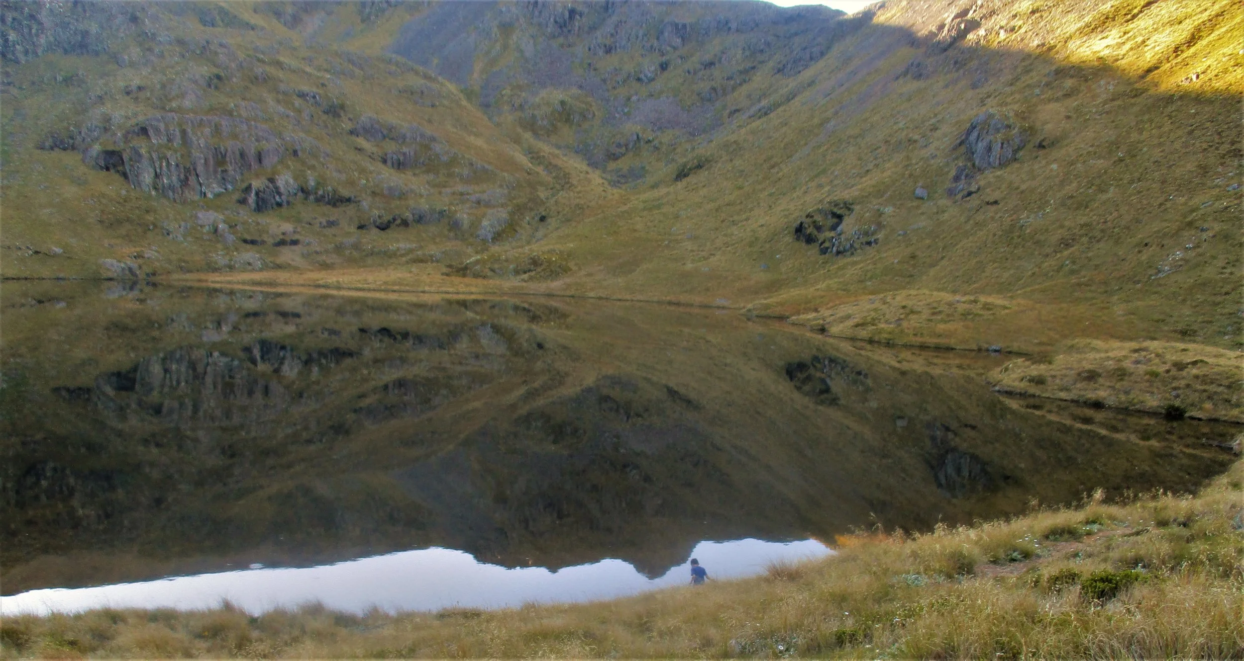 Windless - for a brief few hours, Leo searching for rocks bugs and things at Lake Peel.