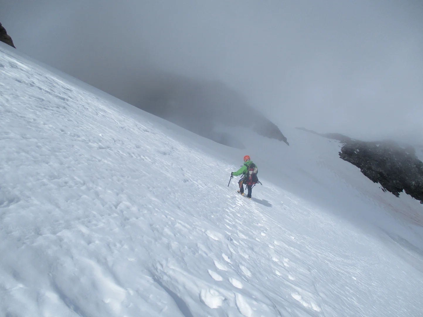 By the time we had descended to the Bivvy rocks the wind and clouds had enshrouded the mountain..