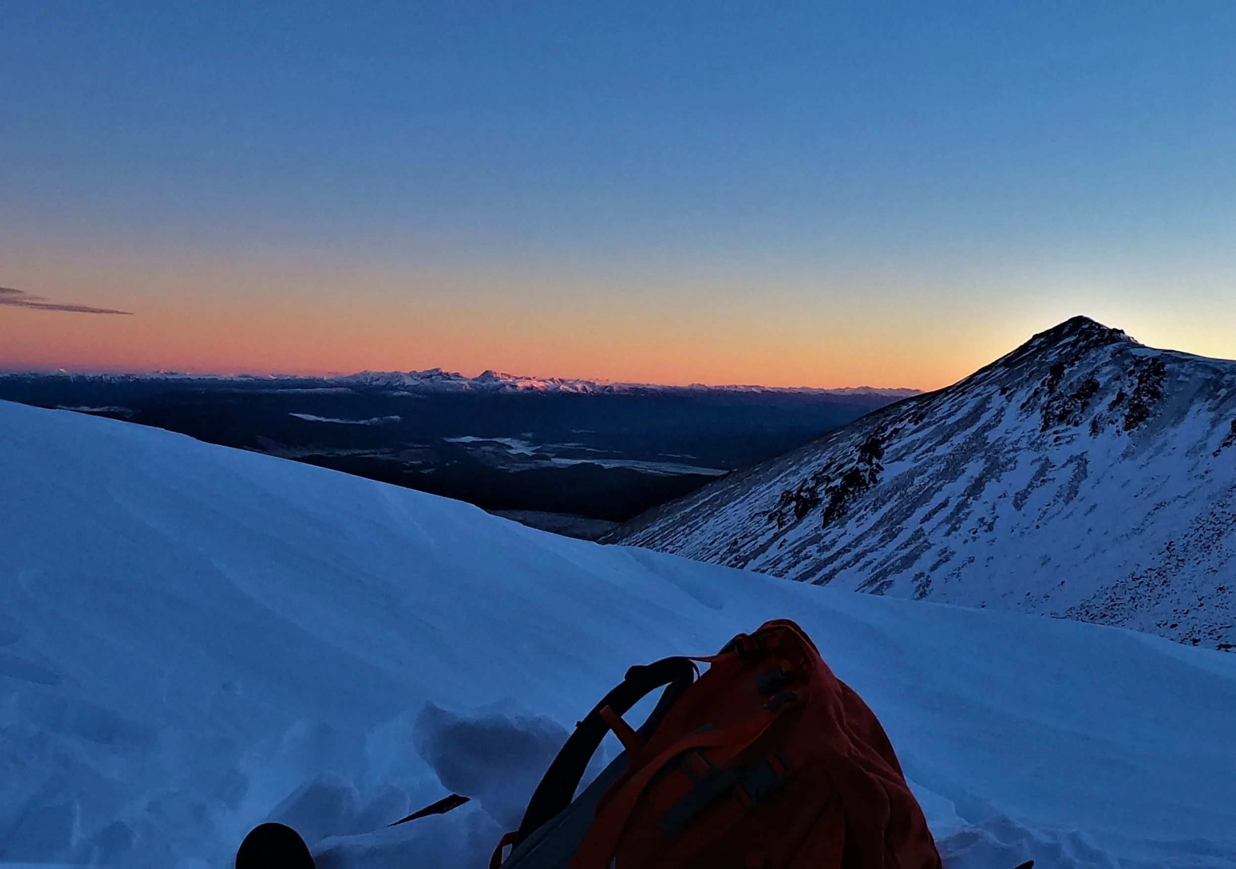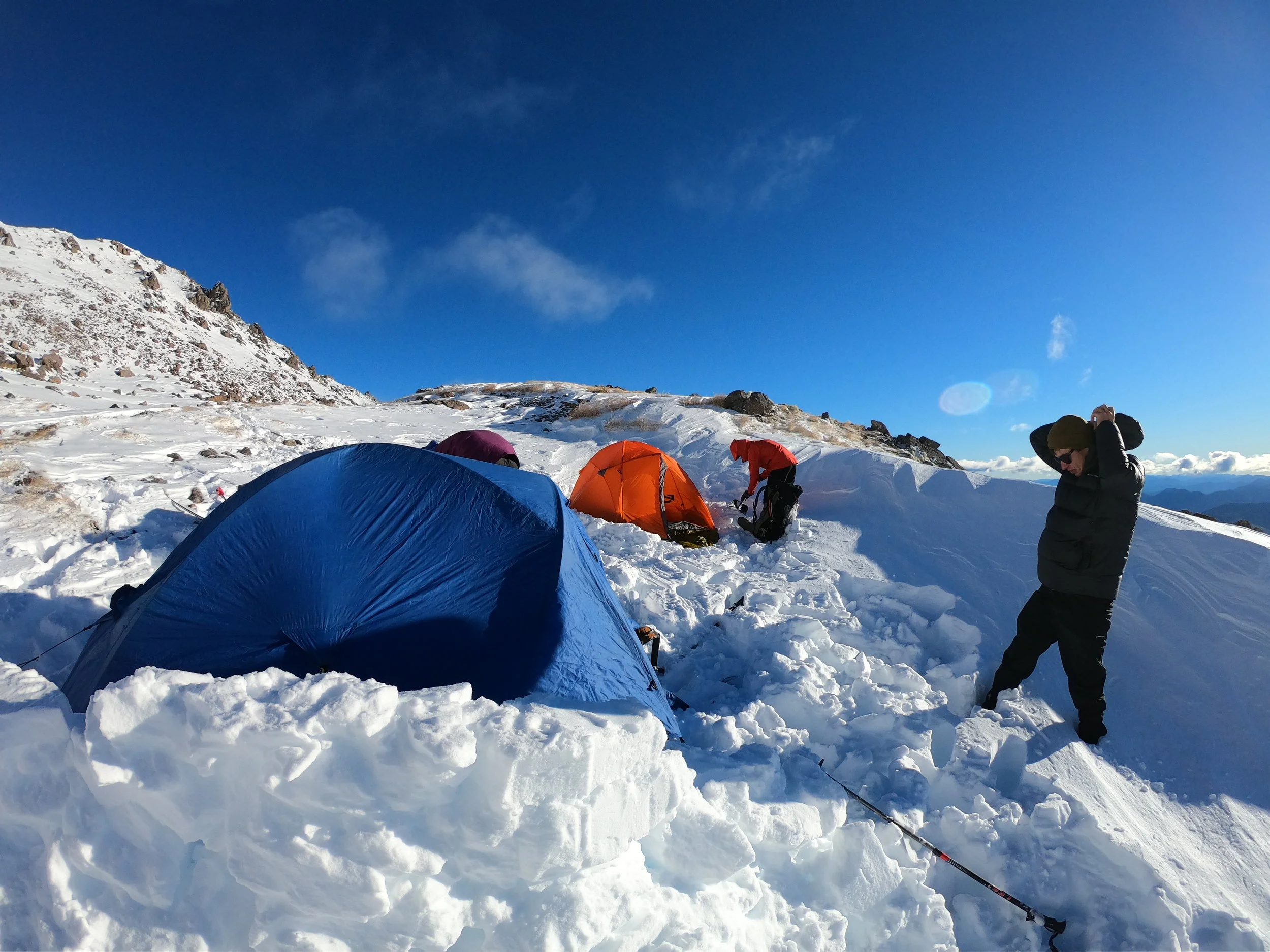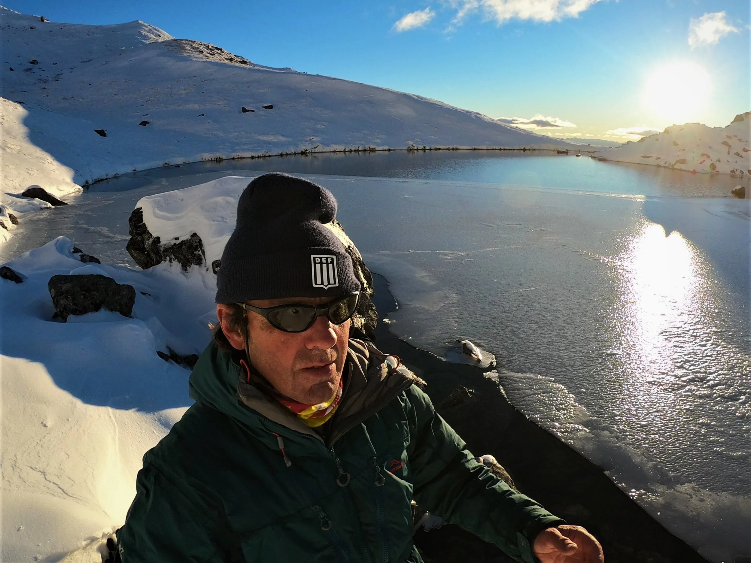 Mid May - the small amount of icy snow makes a small rock climb treacherous for Sergio.